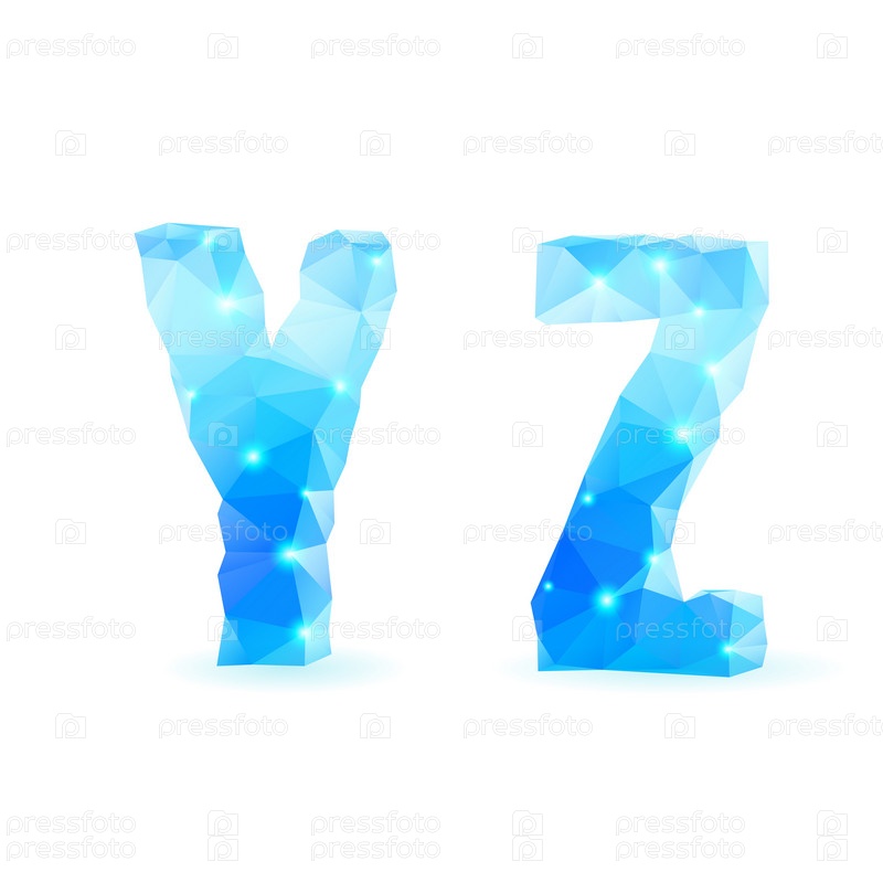 Блестящий синий полигональный шрифт, буквы Y и Z