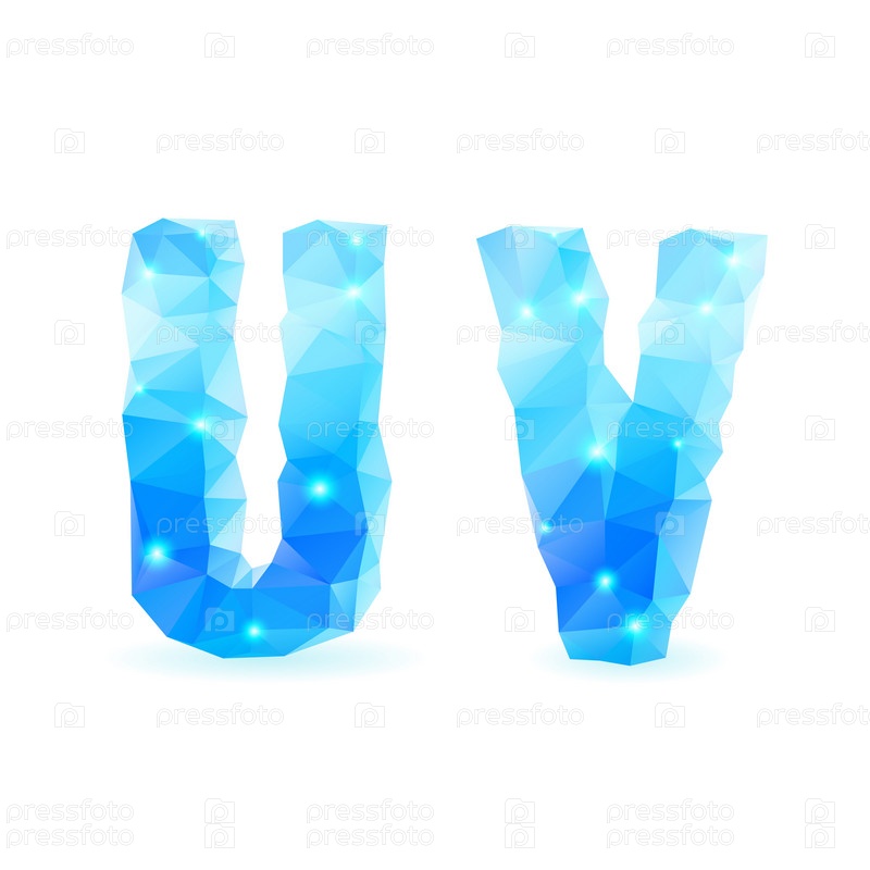 Блестящий синий полигональный шрифт, буквы U V