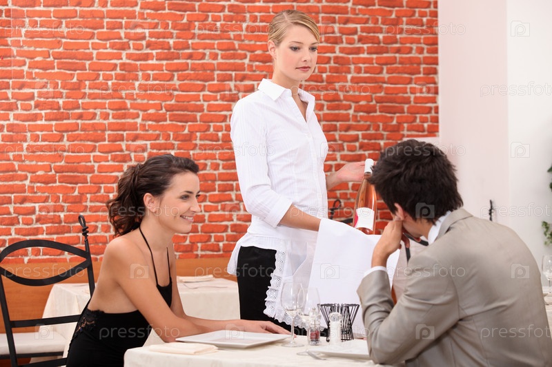 Пара заказывает вино в ресторане