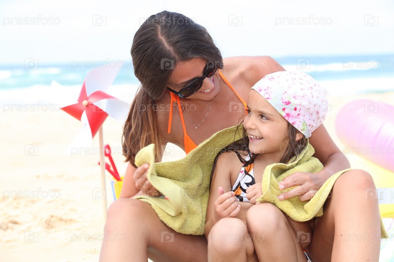 Мать и дочь на пляже