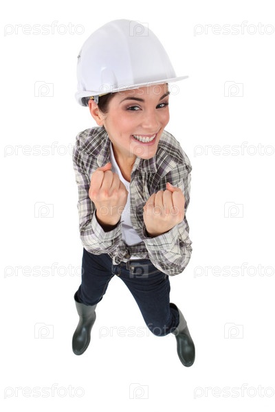 Девушка в строительной каске