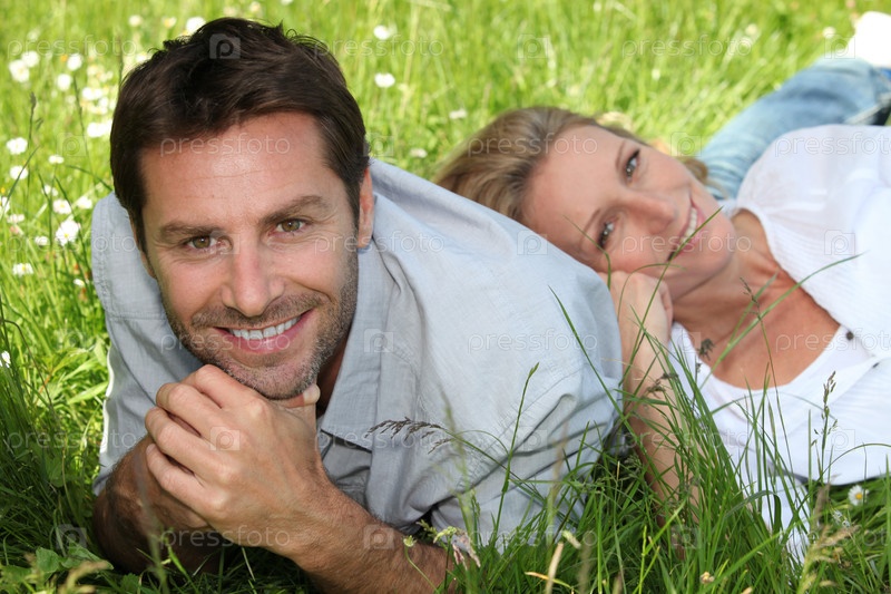 Пара отдыхает на траве