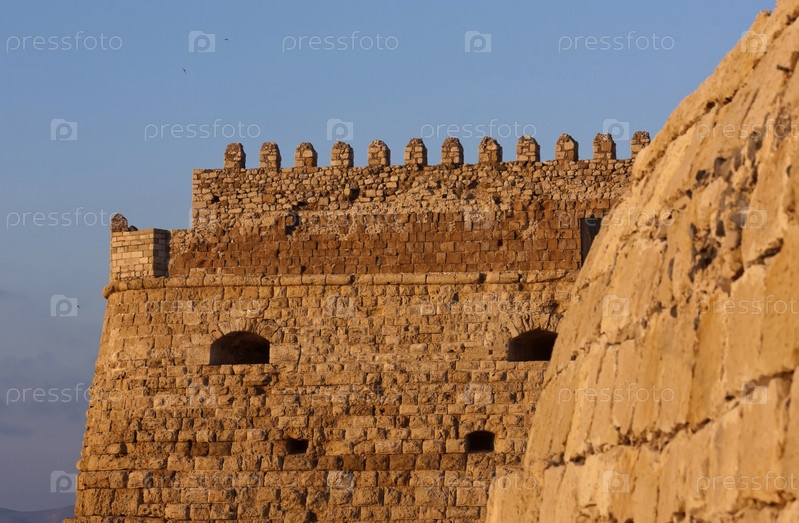 Фрагмент древней стены на фоне неба (Греция, остров Крит, город Ираклео)