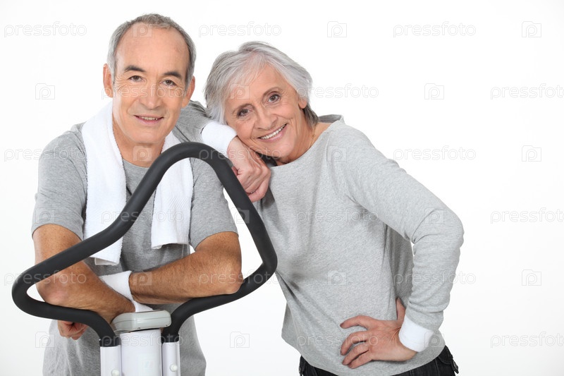 Пожилая пара с тренажером