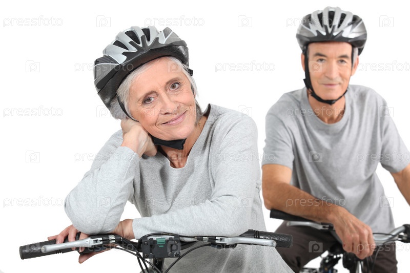 Пожилая пара на велосипеде