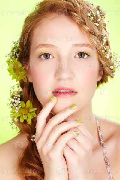 Портрет красивой девушки с цветами в волосах