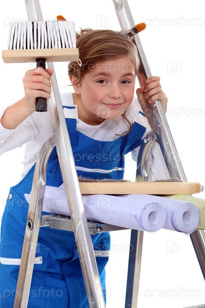 Девочка в костюме маляра