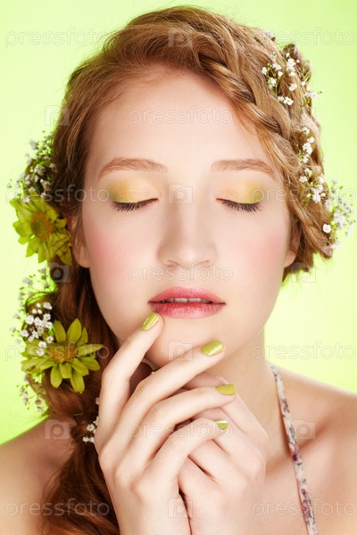 Портрет красивой девушки с цветами в волосах