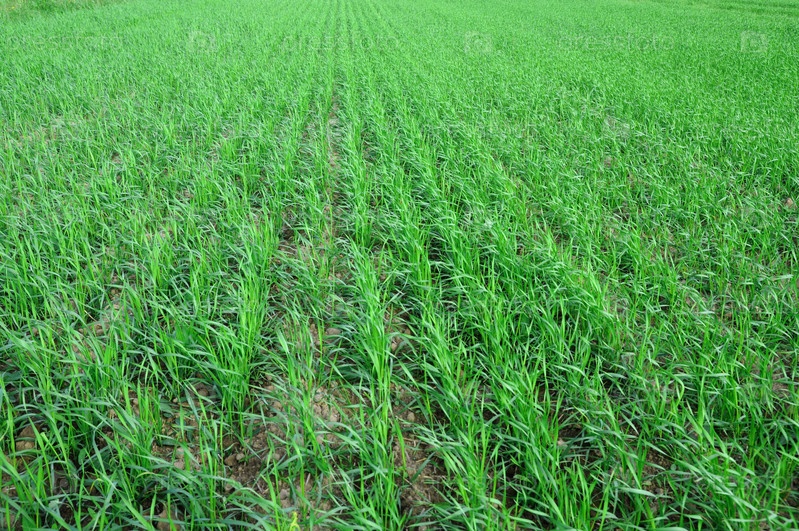 Зелёное травянистое поле с линейной травкой
