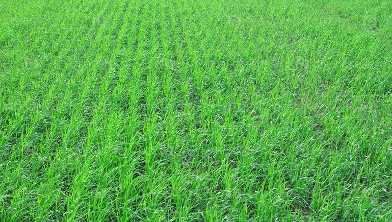 Зелёное травянистое поле с линейной травкой
