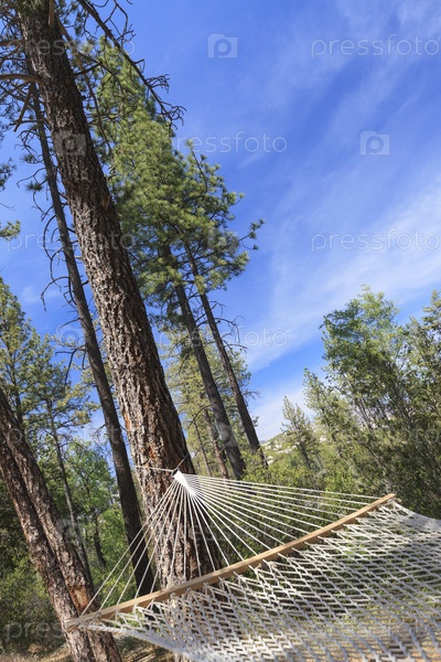 Гамак висит среди сосен