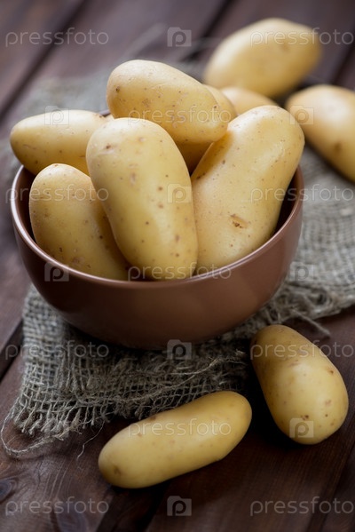 Свежий картофель на деревянном фоне