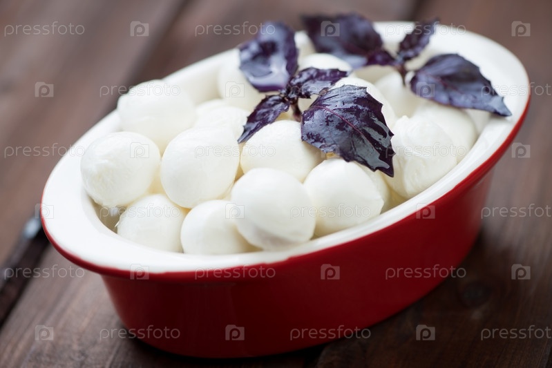 Чашка с шариками моцареллы и базиликом
