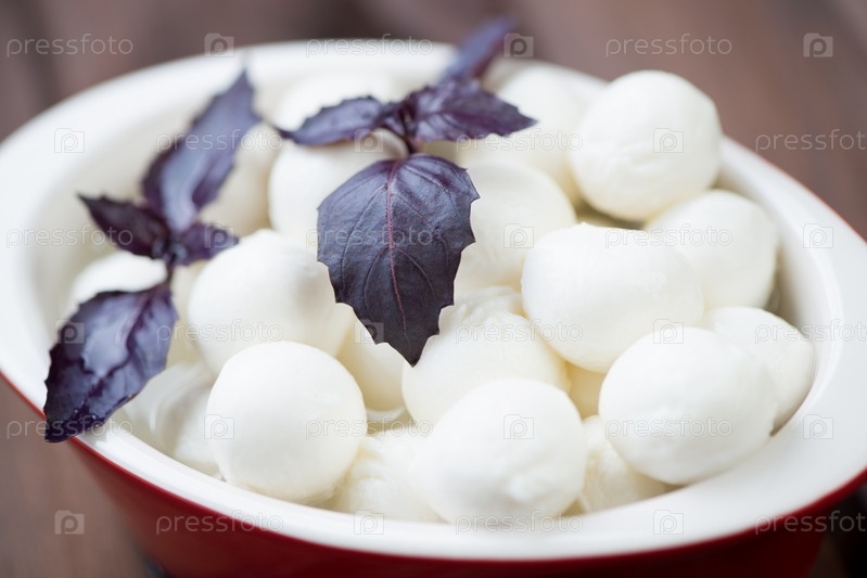 Шарики моцареллы с фиолетовым базиликом