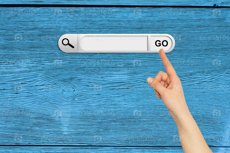 Рука на панели поиска в браузере
