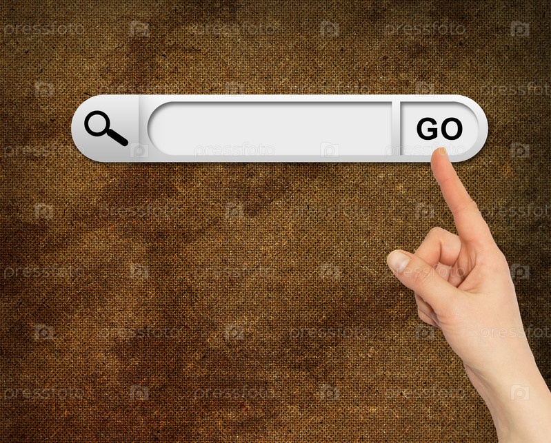 Рука на панели поиска в браузере