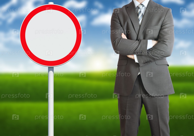 Бизнесмен и дорожный знак
