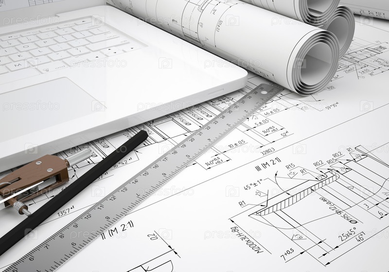 Чертежи и ноутбук
