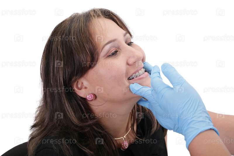Женщина с брекетами у стоматолога