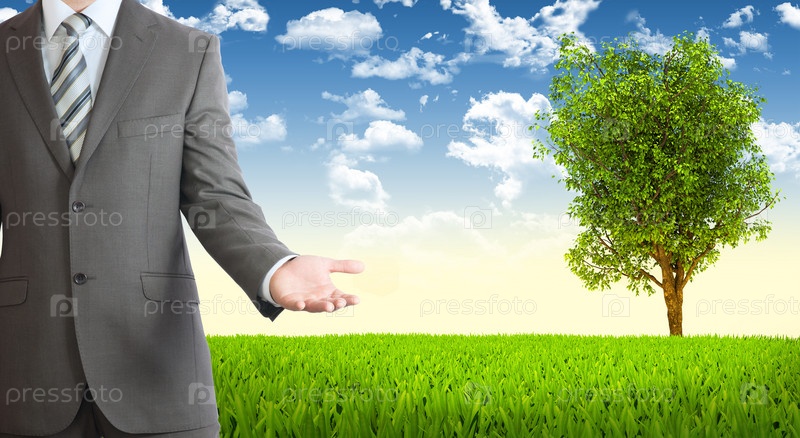 Бизнесмен на фоне летнего пейзажа