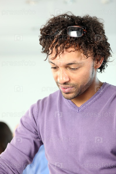 Мужчина в фиолетовом джемпере
