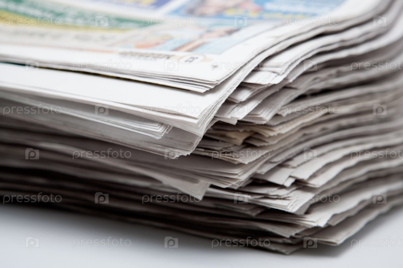 Стопка газет на белом фоне