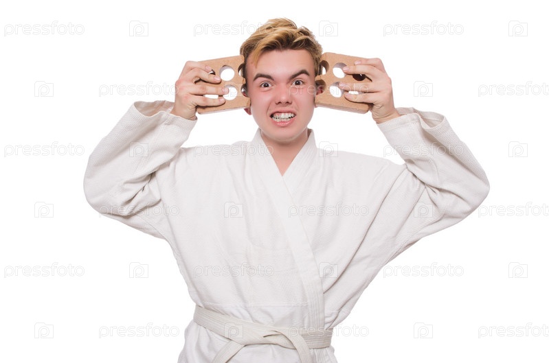 Каратист ломает кирпичи