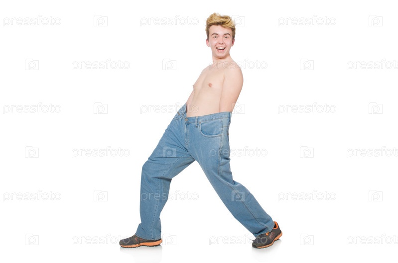 Забавный мужчина в огромных брюках