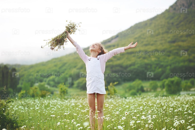 Девочка на поляне с цветами