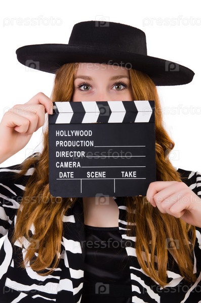 Молодая женщина с кинохлопушкой