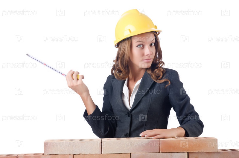 Женщина строитель с рулеткой