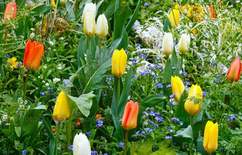 Красивые разноцветные тюльпаны
