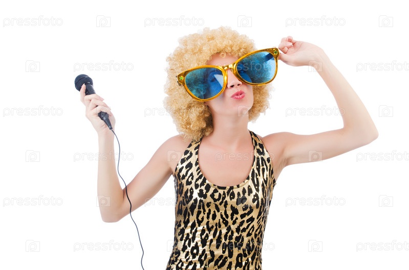 Певица с микрофоном и солнцезащитными очками