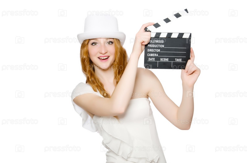Молодая женщина с кинохлопушкой
