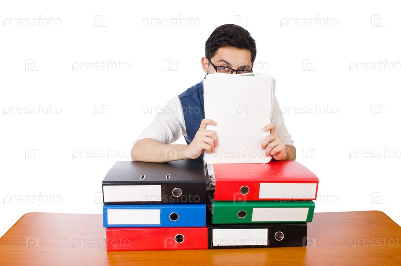 Забавный мужчина с кучей документов
