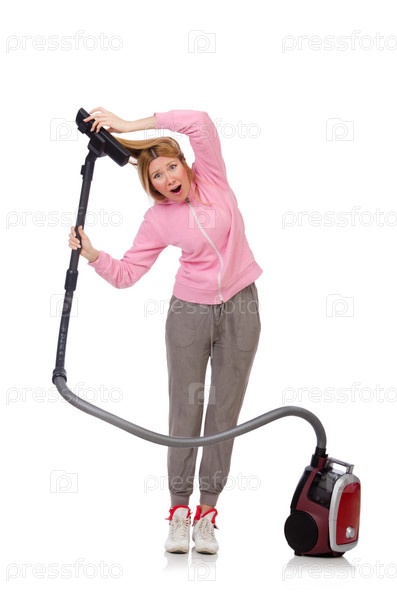 Молодая женщина с пылесосом