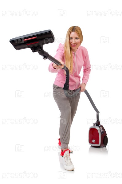 Молодая женщина с пылесосом