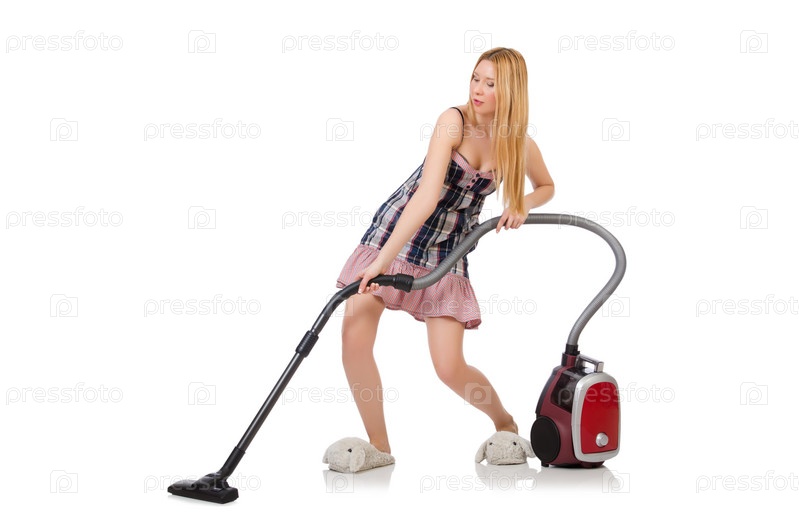 Молодая женщина с пылесосом