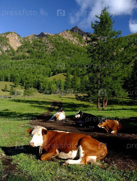 Коровы отдыхают на лугу