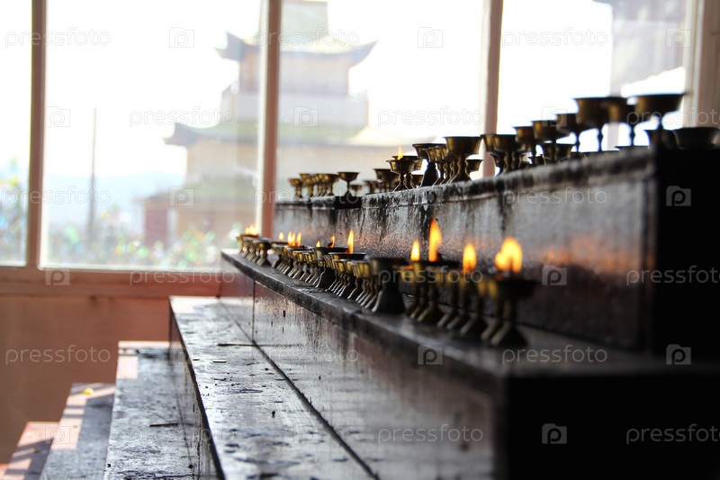 Горящие свечи в буддийском храме