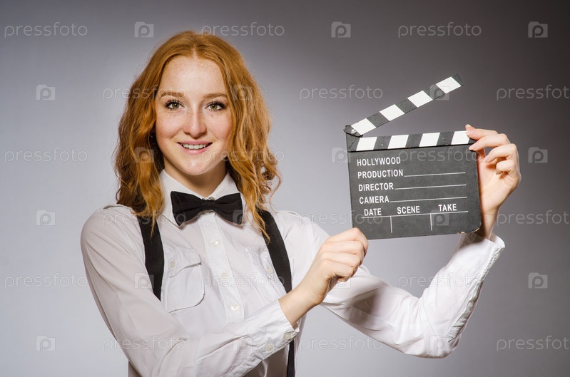 Молодая женщина с хлопушкой