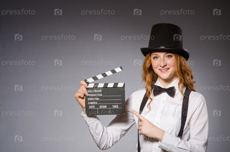 Молодая женщина с хлопушкой