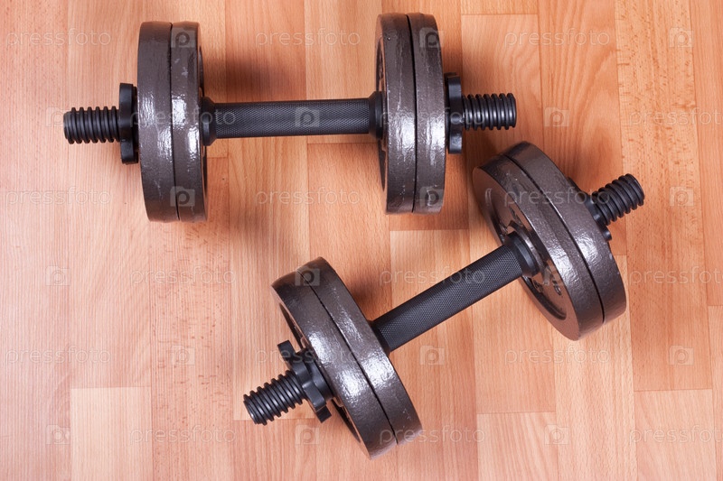 Две гантели на полу