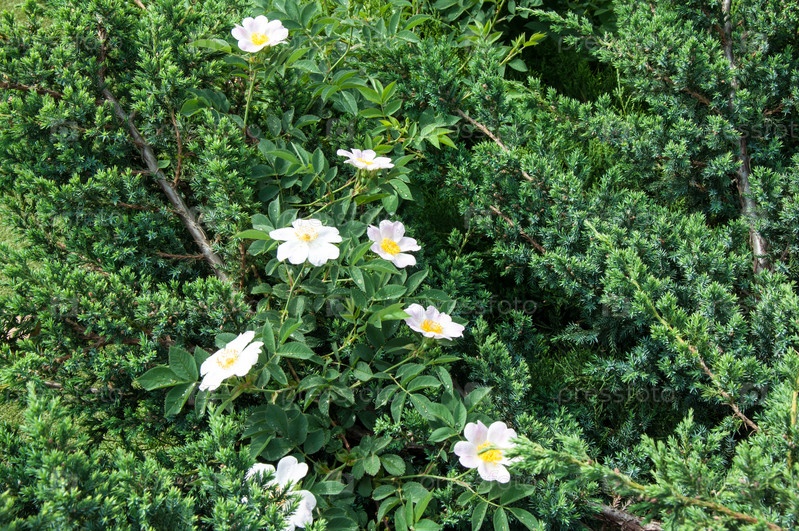 Цветущий шиповник после дождя