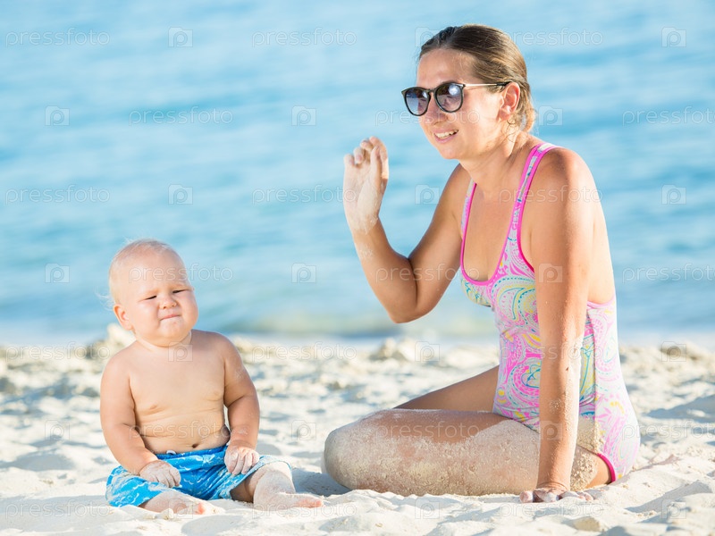 Мать с ребенком на пляже