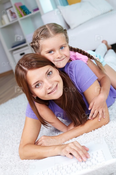 Женщина и девочка дома
