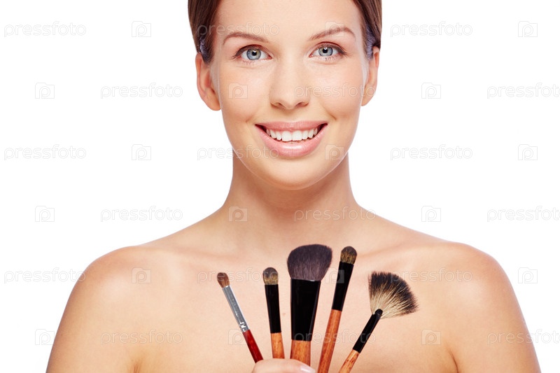 Женщина с кистями для макияжа