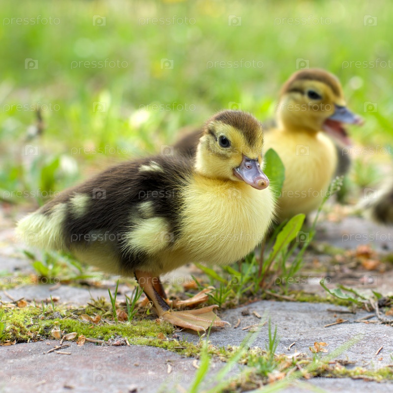Утята на зеленом лугу