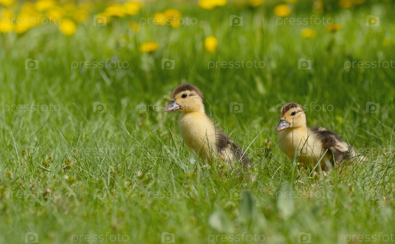 Утята на зеленом лугу