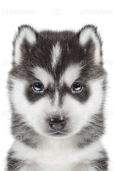 Портрет щенка породы сибирский хаски на белом фоне